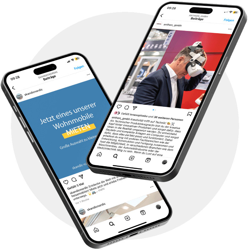 Für gewöhnlich startet unsere Betreuung für soziale Netzwerke wie Instagram, Facebook oder LinkedIn bei einigen hundert Euro im Monat. Wenn du jedoch planst, bezahlte Werbeanzeigen zu schalten, solltest du immer daran denken, dein Werbebudget als zusätzlichen Faktor einzuplanen. Wir passen uns flexibel deinem Budget an, um den größtmöglichen Nutzen aus deiner Investition in Social-Media-Marketing zu ziehen.